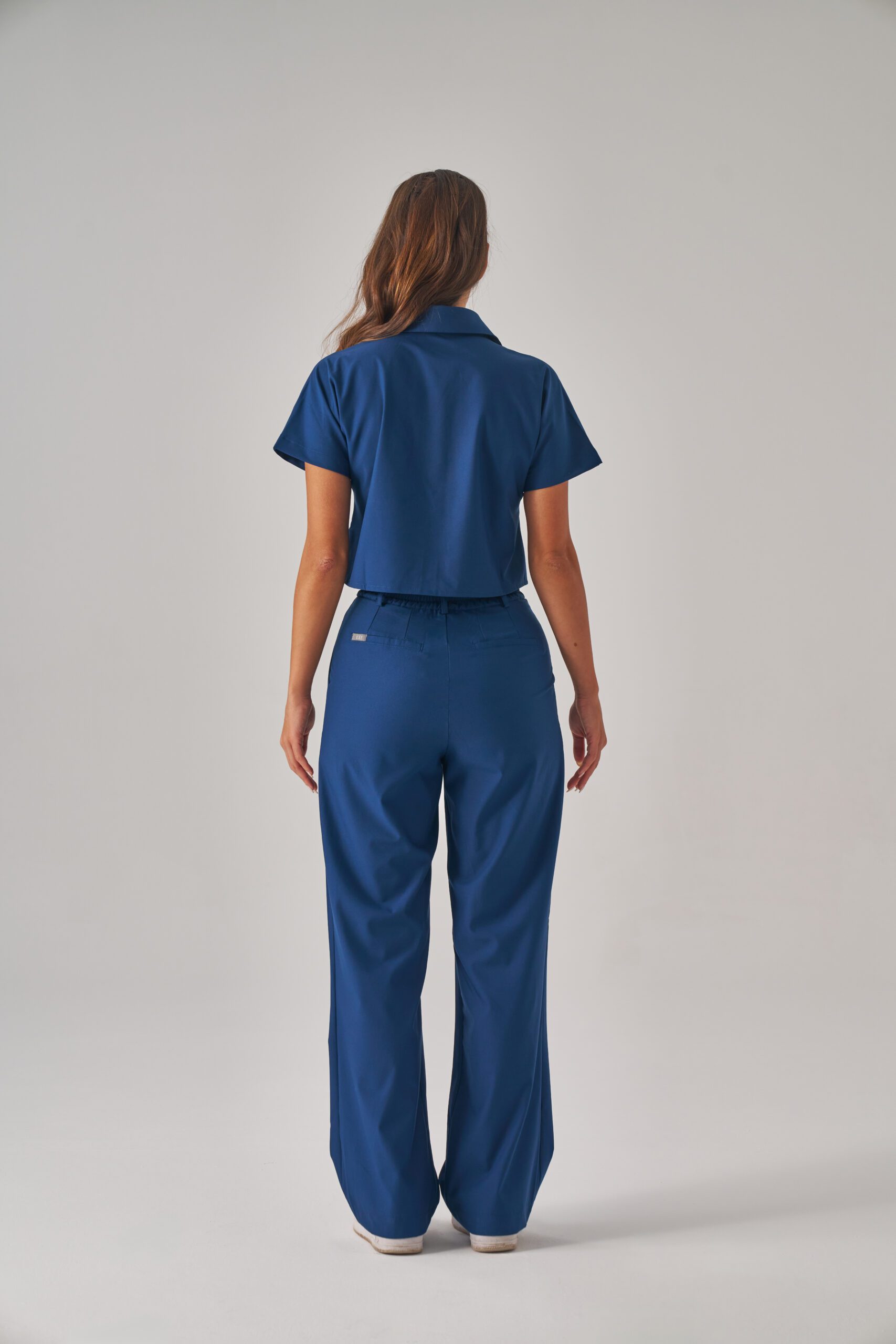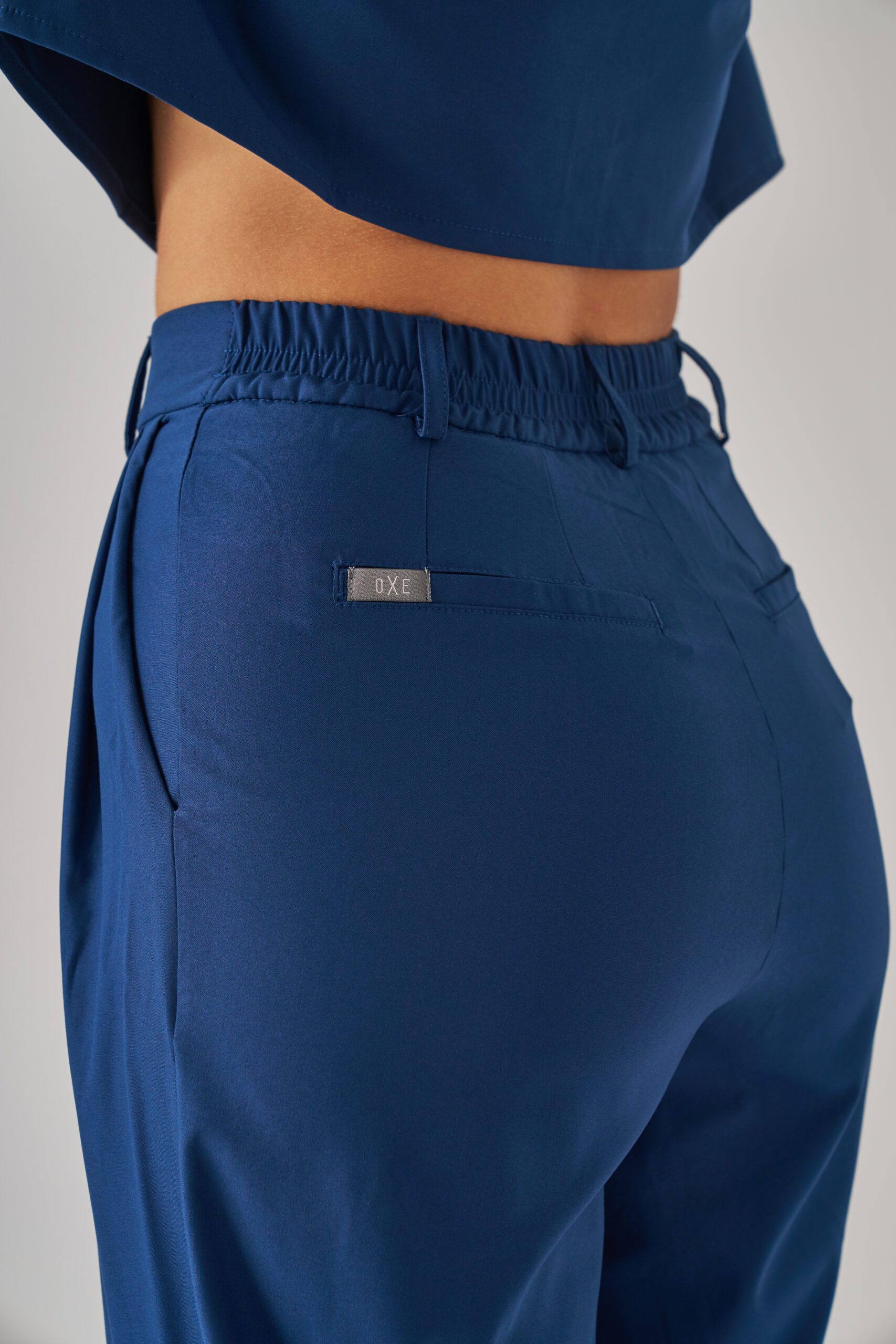 Ön kısmındaki pile detayları scrubsa zarif bir duruş kazandırır. Yan cepler, günlük kullanımda işlevsellik sunar. Yarım lastikli bel yapısı ve kemer köprüleri, konforlu ve estetik bir görünüm oluşturur.
