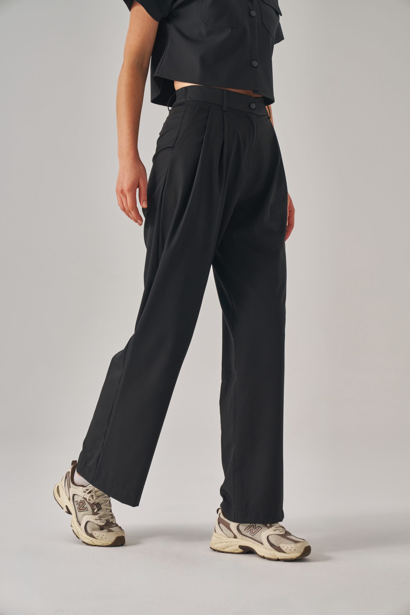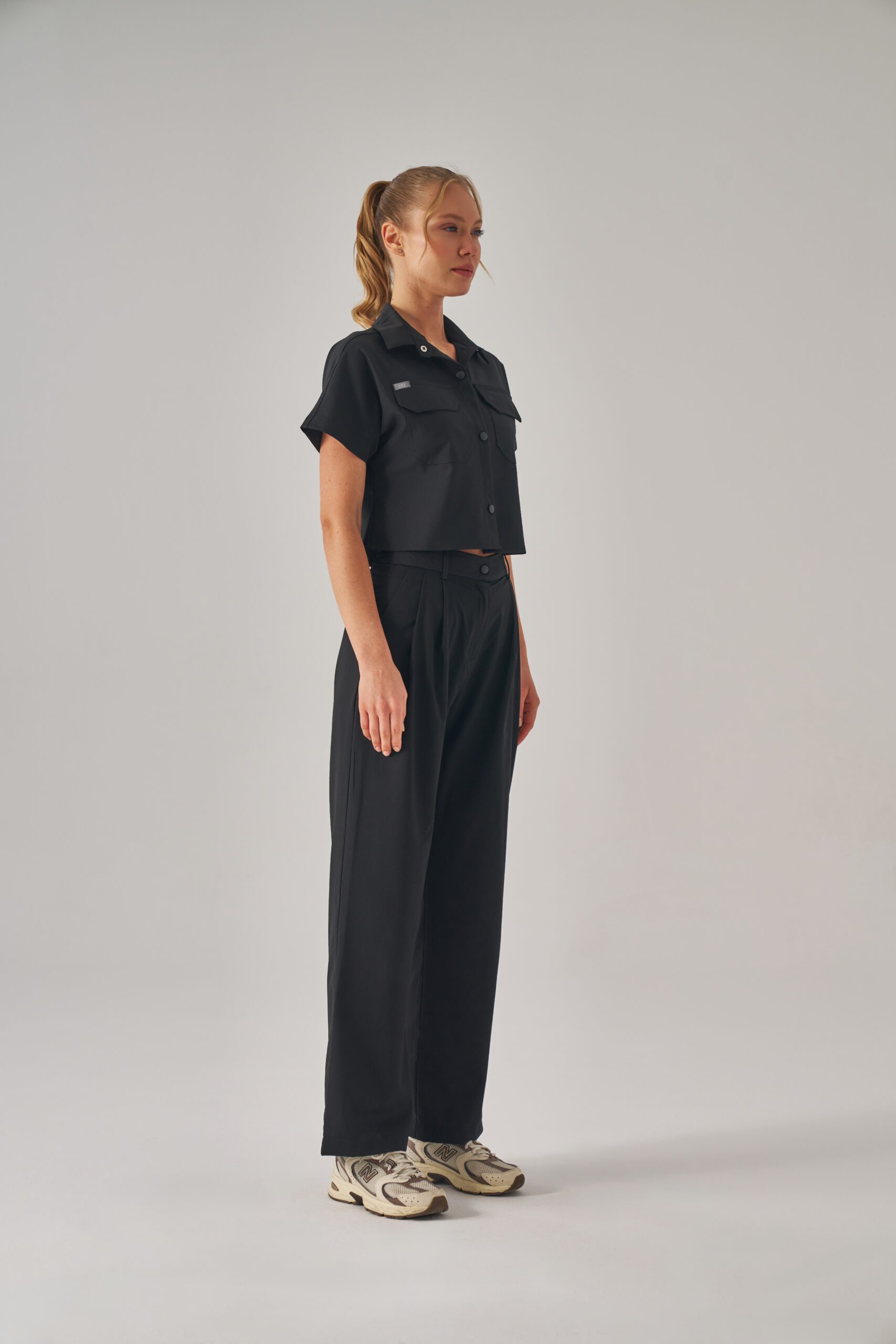 Ön kısmındaki pile detayları scrubsa zarif bir duruş kazandırır. Yan cepler, günlük kullanımda işlevsellik sunar. Yarım lastikli bel yapısı ve kemer köprüleri, konforlu ve estetik bir görünüm oluşturur.